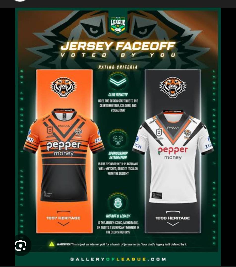Usually colours are adopted that allow the sponsors logo to stand out more (especially if you are struggling to get sponsors, or incentivising them to pay more)...therefore the darker orange when the logo is a light colour and a lighter orange when the logo is darker. Get rid of that stupid white box and the pepper logo will stand out more on the lighter orange background as the letters are red.@joel Whats with the Orange , being from the Magpie side why is there so many variations of the colour Orange with the jerseys , why not just have the colour that the original Balmain jersey was .. confused.